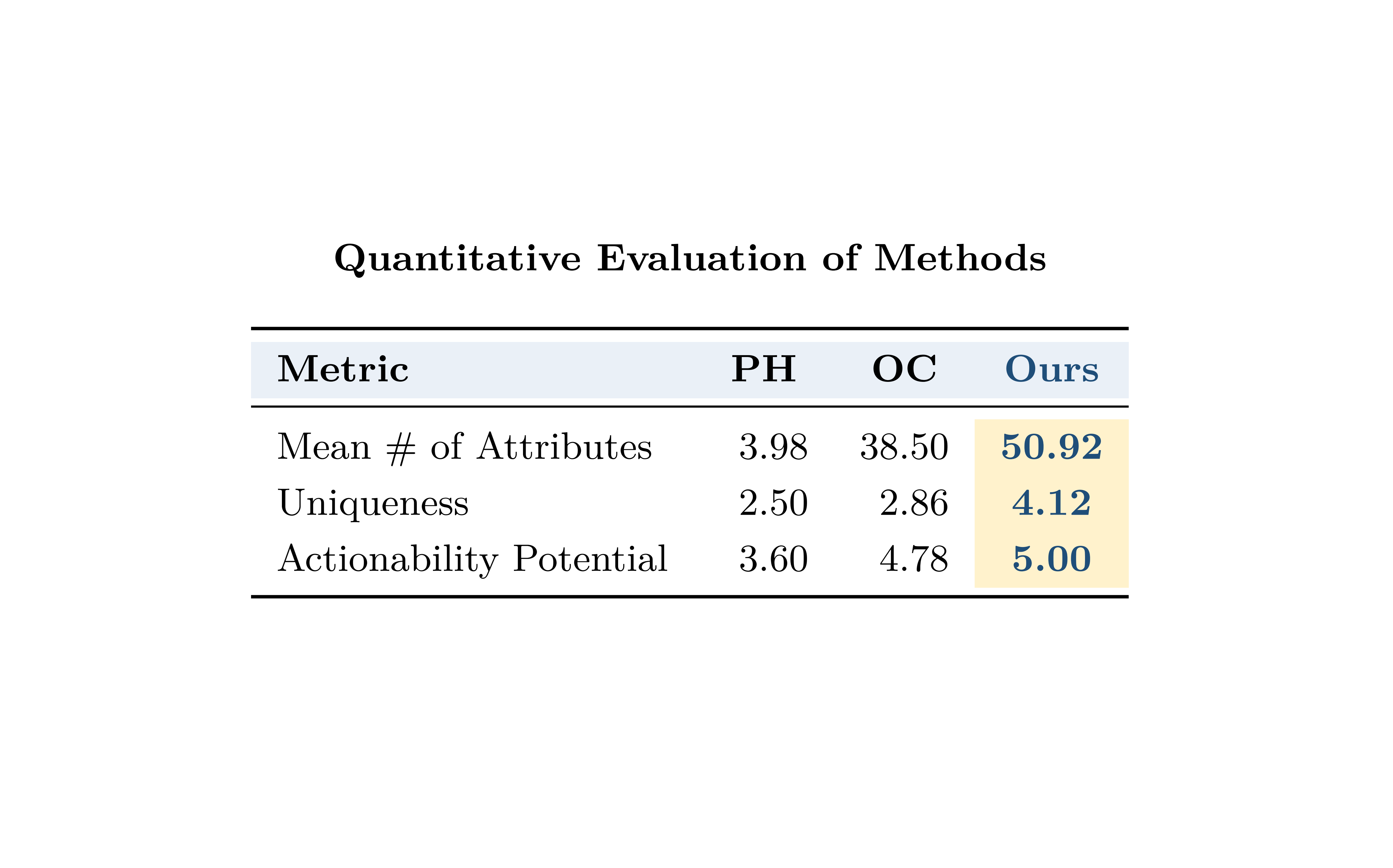 Result Figure 3. Intrinsic comparisons show that DeepPersona substantially outperforms prior baselines (PersonaHub and OpenCharacter) across all metrics. It achieves the highest mean number of attributes (50.92), indicating far greater persona depth, along with markedly higher uniqueness (4.12) and actionability potential (5.00), reflecting richer diversity and stronger utility for downstream personalization tasks.